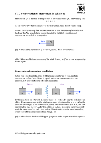 Igcse momentum worksheet. Worksheets to support all areas of GCSE Physics. Free GCSE Physics revision materials. Elastic and non-elastic collisions conservation of momentum - concepts and calculations and Newtons 2nd law of motion Doc Browns school physics revision notes.